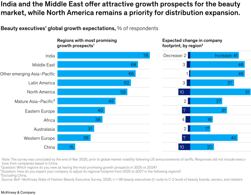 시장 성장 측면에서도 실질적인 우선순위가 정해질 것으로 예상됩니다. 대부분의 뷰티기업들은 북미 시장 진출을 우선순위로 삼을 계획이며, 많은 이들이 인도와 중동 지역에서 매우 높은 성장을 예상합니다.