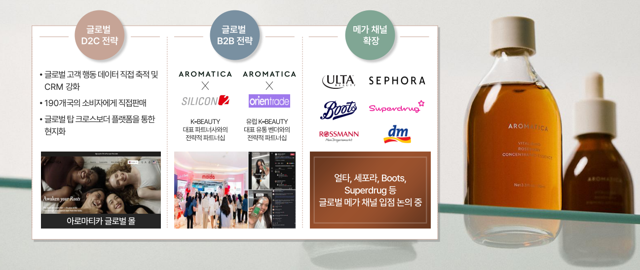 아로마티카는 지속가능성과 브랜드 정체성을 무기로, K-뷰티 내에서 ‘친환경 프리미엄’ 세그먼트 리더로 자리매김 중입니다.