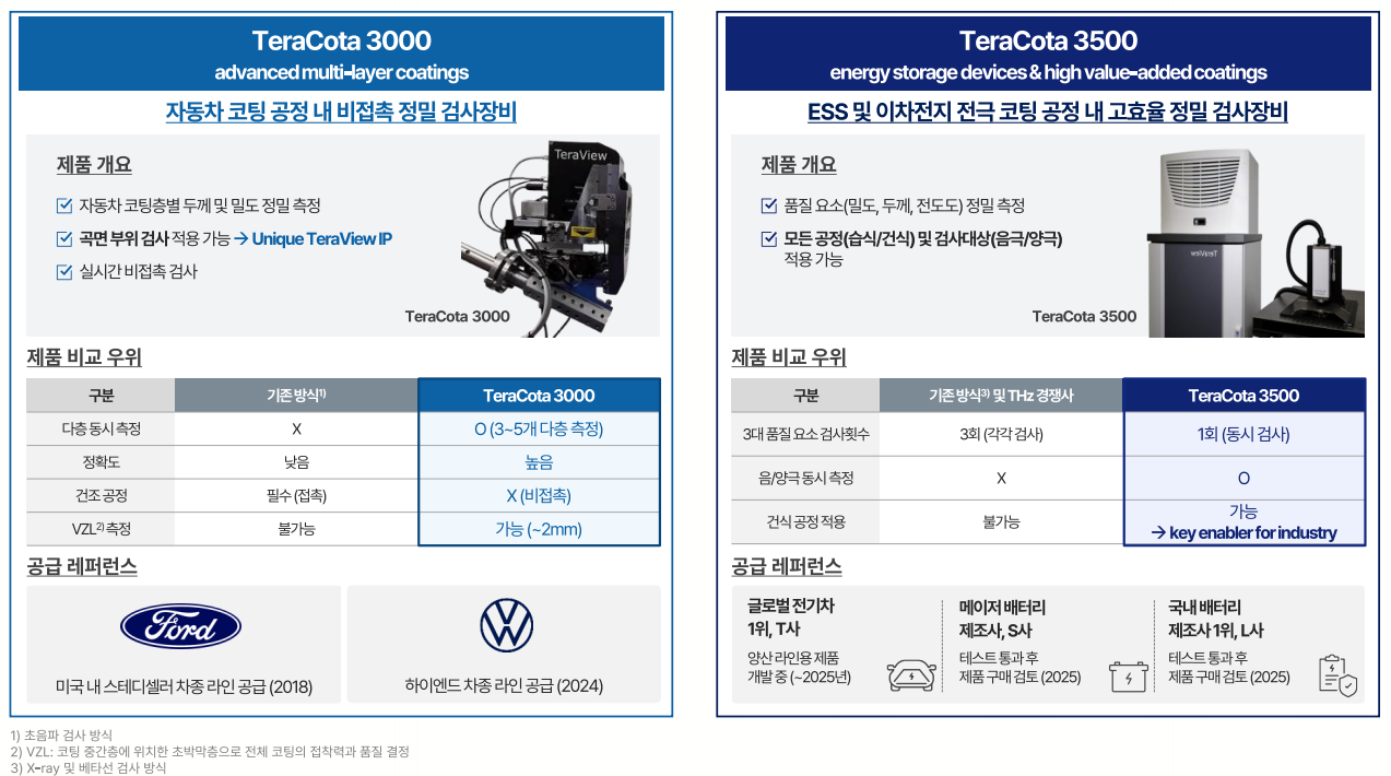 “테라뷰는 THz 기술을 산업 표준으로 만든 기업이다.” AI 반도체 패키징과 2차전지 코팅공정 등 첨단 제조업의 검사 패러다임이 바뀌는 시점에서 테라뷰는 이미 글로벌 톱티어 고객사 레퍼런스를 확보했습니다.
