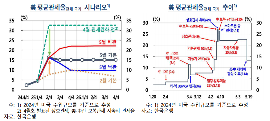 이번 전망의 전제에 눈에 띄는 부분은 관세정책에 대한 전망을 보다 강도가 강화된 수준으로 보는 부분입니다. 그럼에도 더욱 비관적인 부분은 불확실성입니다. 관세가 7월 8일까지 유예가 되었지만, 그사이 협상의 결과에 따라 여러 시나리오가 가능하기 때문에 낙관과 비관 갭이 매우 큽니다.