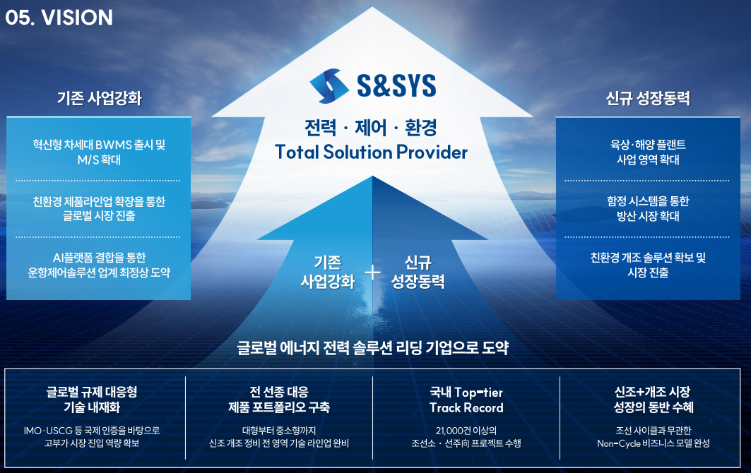 당사의 강점은 선박 운영 시스템의 Value-Chain을 구축하여 독보적인 Turn-key 솔루션 경쟁력을 보유하고 있다는 점입니다. 또한 이번 상장을 통해 신규 성장동력을 통해 글로벌 에너지 전력 솔루션 리딩 기업으로 도약하겠다는 포부를 밝히고 있습니다.