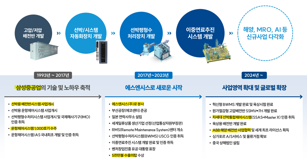 우리회사는 삼성중공업에서 분사하여 2017년 설립되었고 경기도 화성시에 소재하고 있습니다. 주요사업은 조선 해양 관련 파워솔루션, 운항제어솔루션, 에코솔루션 등을 영위하고 있습니다.