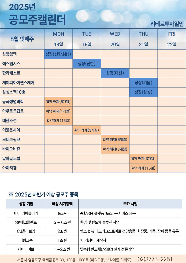 | 8월 셋째주 공모주캘린더 (1) | 2025.08.08 |