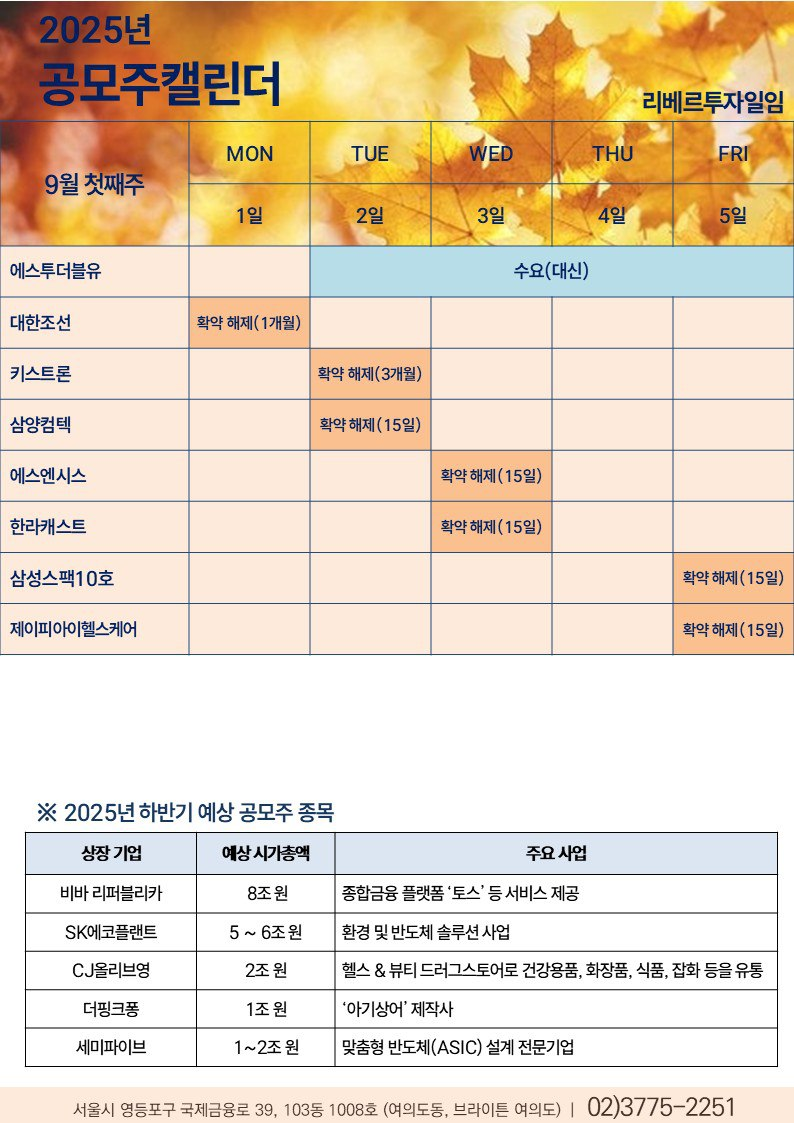 | 9월 둘째주 공모주캘린더 (0) | 2025.09.08 |